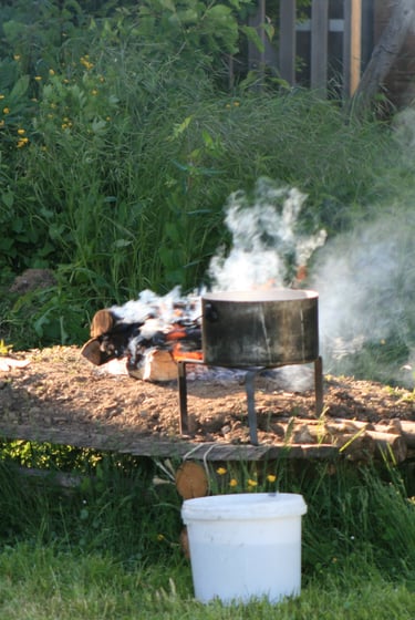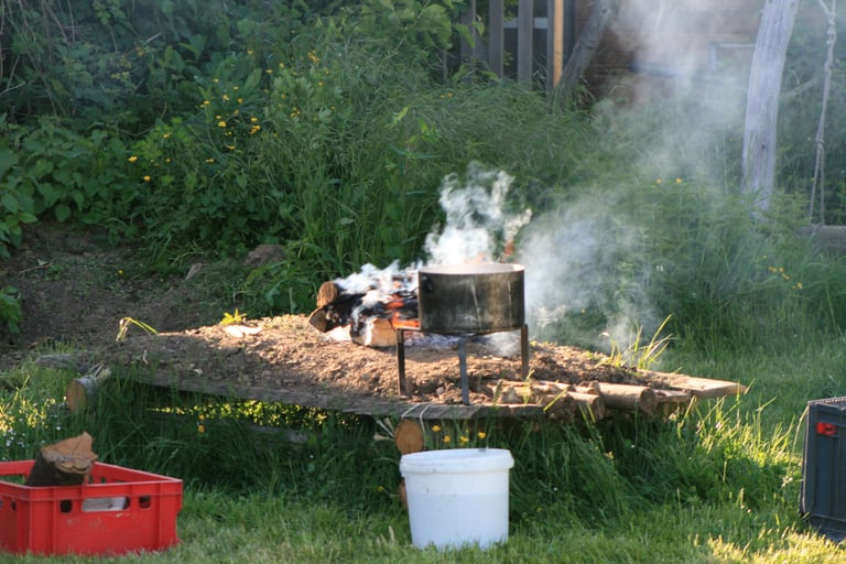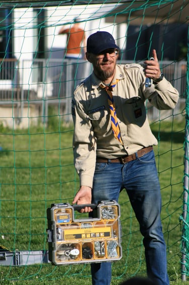 Bei uns gibt es meistens etwas zu essen, was wir fast immer über dem Feuer zubereiten. Am Anfang sind wir alle in großer Runde am Fahnenmast zusammen mit Andacht, Lied und anderen Gimmicks. Danach teilen wir uns auf und jeder geht in sein Team entsprechend seines Alters.